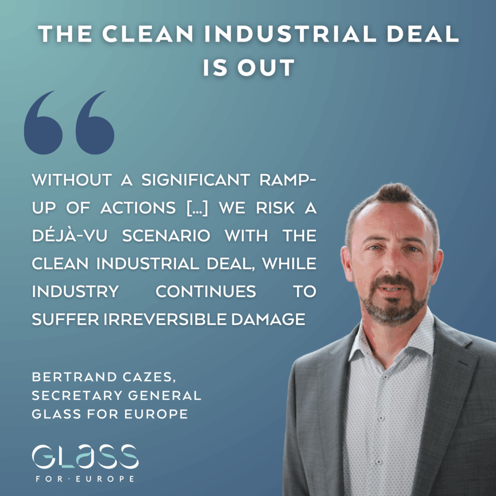 In reaction to the Clean Industrial Deal, Bertrand Cazes, Secretary General of Glass for Europe, emphasized the gravity of the situation, stating, “Without a significant ramp-up of actions to reduce energy costs in the short-term and reforms to provide effective and lasting protection against the risk of carbon leakage – be it through ETS mechanisms or the CBAM – we risk the déjà-vu scenario of a communication not triggering the desired impact, while industry continues to suffer irreversible damage.” While the Commission’s plan to mobilize €100 billion to support EU-made clean manufacturing is acknowledged as a positive step, Glass for Europe urges the inclusion of more targeted measures that provide swift relief to energy-intensive industries, ensuring their resilience and competitiveness in the global market.