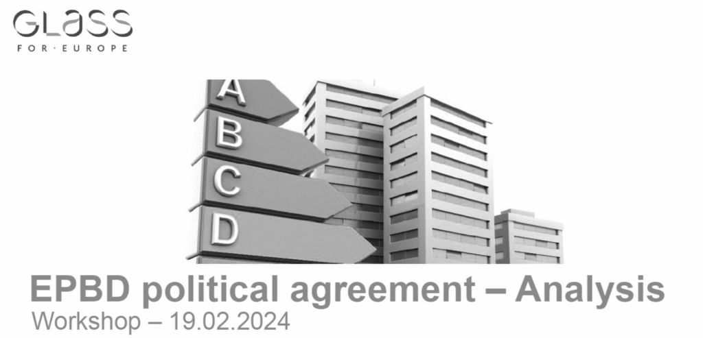 On 19 February, Glass for Europe invited its National Partners to attend a workshop to analyse the political agreement reached on 7 December on the recast of the Energy Performance of Buildings Directive (EPBD). If the agreement is yet to receive final endorsement by the Council of the EU and the European Parliament’s plenary session, many questions have already been raised. Especially so because many provisions from the revised EPBD are to be decided at the national level such as the minimum energy performance standards or the thresholds for maximum energy consumption of the zero-emission buildings which are to become the norm in the EU.